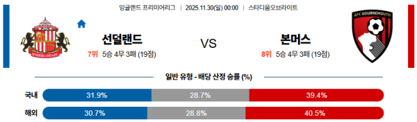 (축구) [토지노월드]11월30일 선덜랜드:본머스 프리미어리그 분석